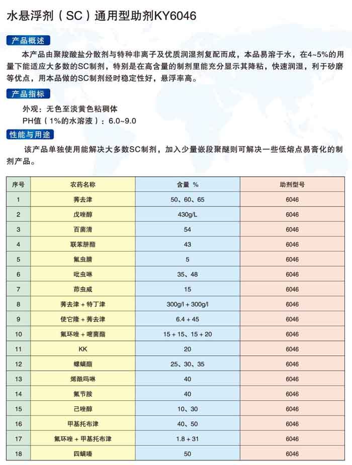 水悬浮剂(SC)通用型助剂KY6046